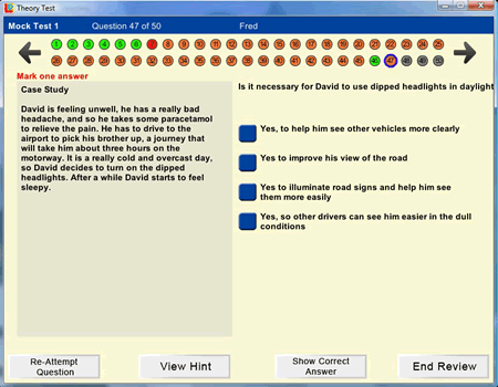 - New Fast Pass learning programme using just the the specially formulated 14 mock tests and review feature (below) for those in a real hurry to pass.